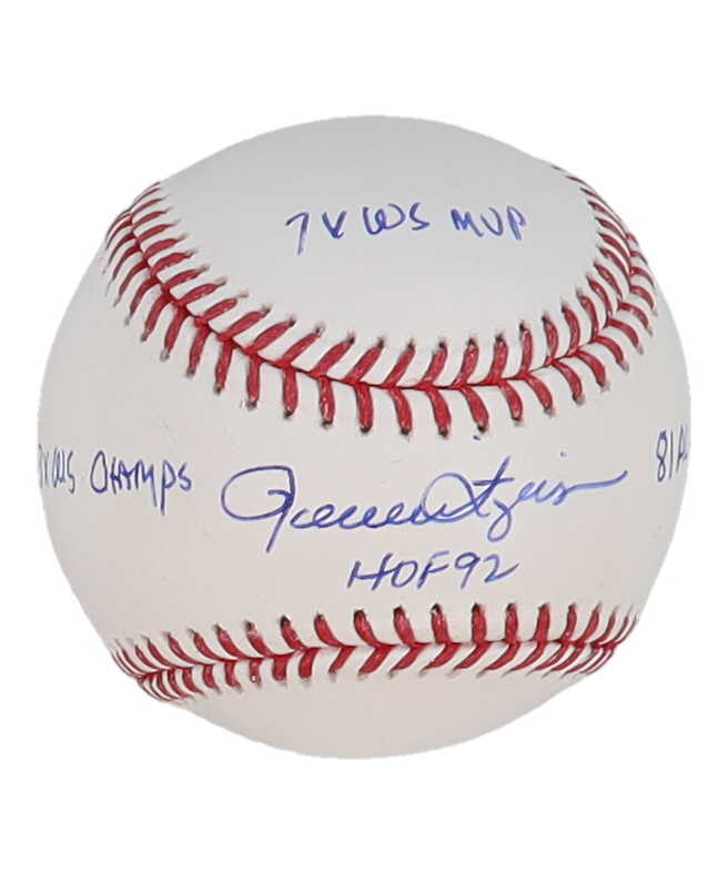 Rollie Fingers Signed OML Baseball Inscribed "HOF 92", "3x WS Champs", "81 AL MVP, CY" & "74 WS MVP" (Beckett)