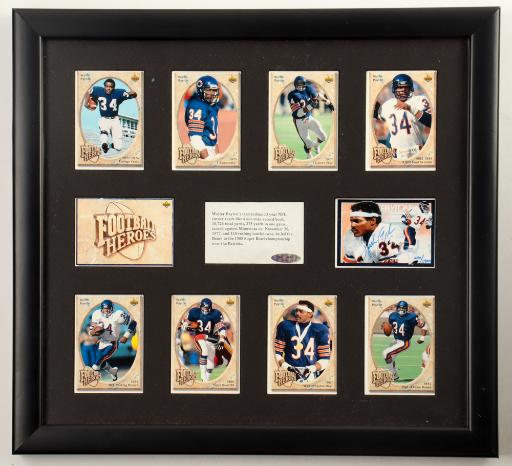 Walter Payton Signed LE Upper Deck Football Heroes Custom Framed Trading Card Display With (10) Cards (UDA)