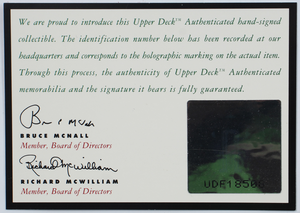 The autograph(s) includes an official Upper Deck Authenticated (UDA) hologram and matching COA for authenticity purposes.