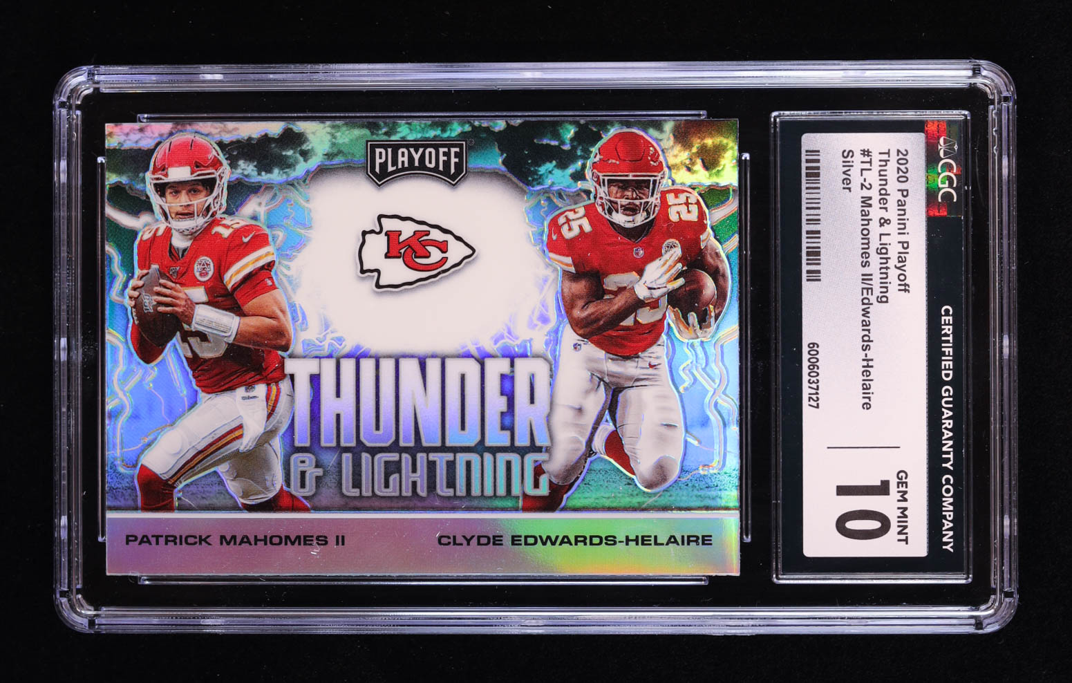 Clyde Edwards-Helaire / Patrick Mahomes II 2020 Playoff Thunder and Lightning Silver #2 (CGC 10)