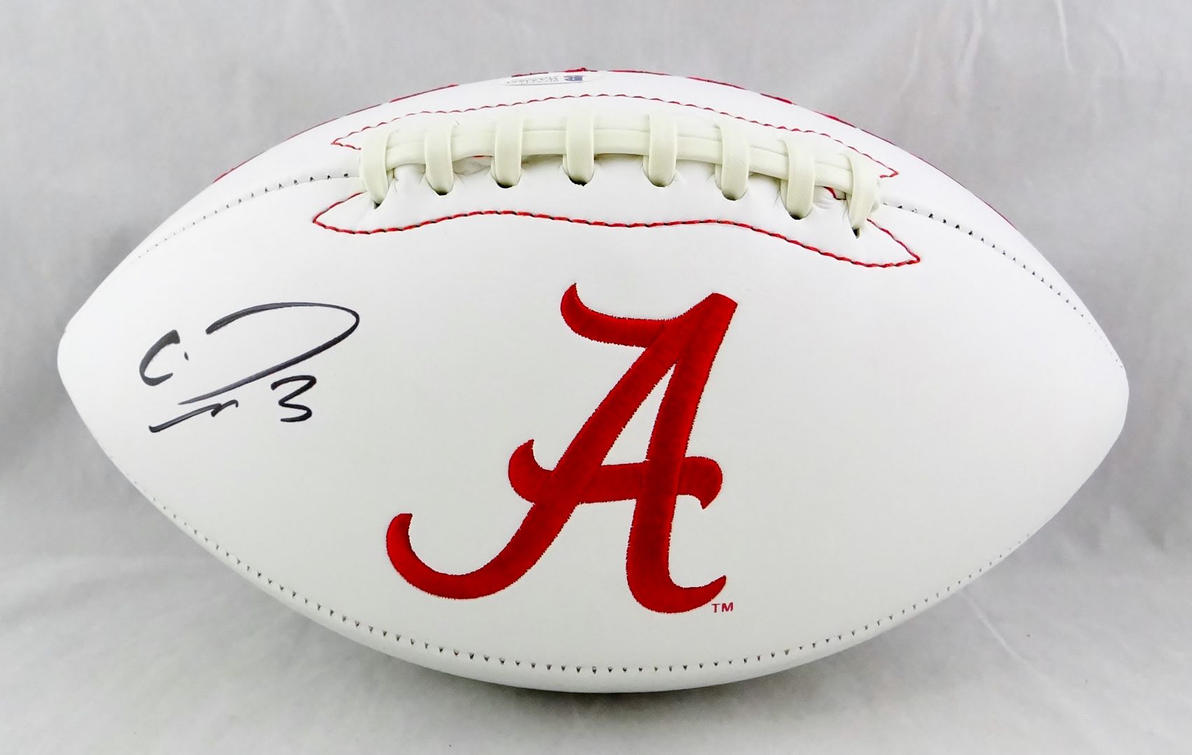 Alabama Crimson Tide logo football has been hand-signed by Calvin Ridley.