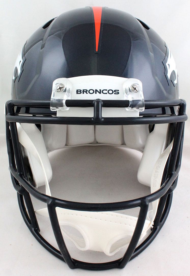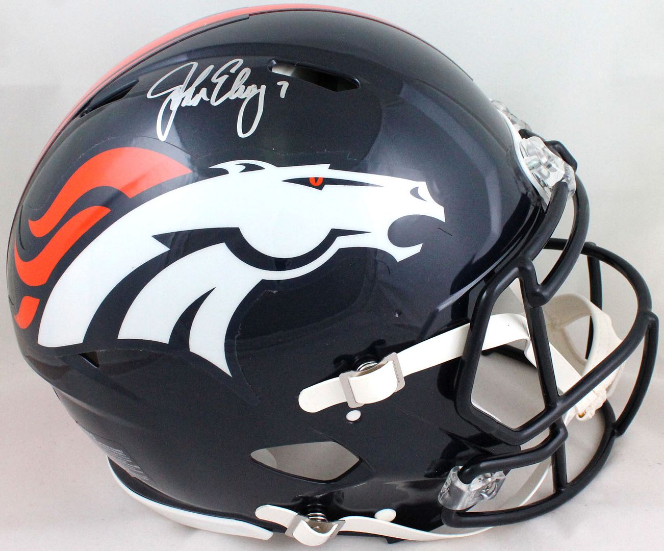 Riddell Denver Broncos full-size authentic on-field Speed helmet. Hand-signed by John Elway (HOF).