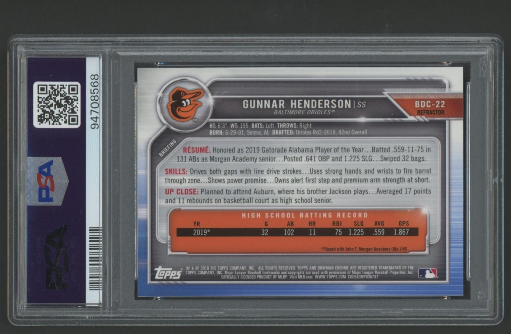 Gunnar Henderson 2019 Bowman Chrome Draft Refractor #BDC22 (PSA 10)