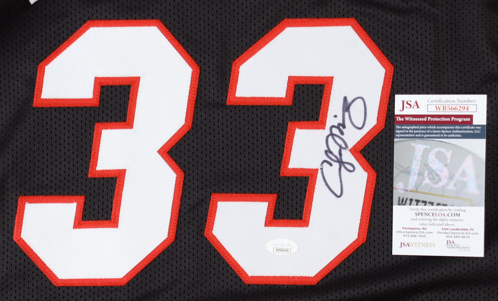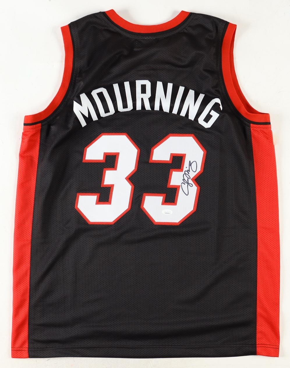 Custom jersey with everything sewn on, size XL. Hand-signed by Alonzo Mourning (HOF).