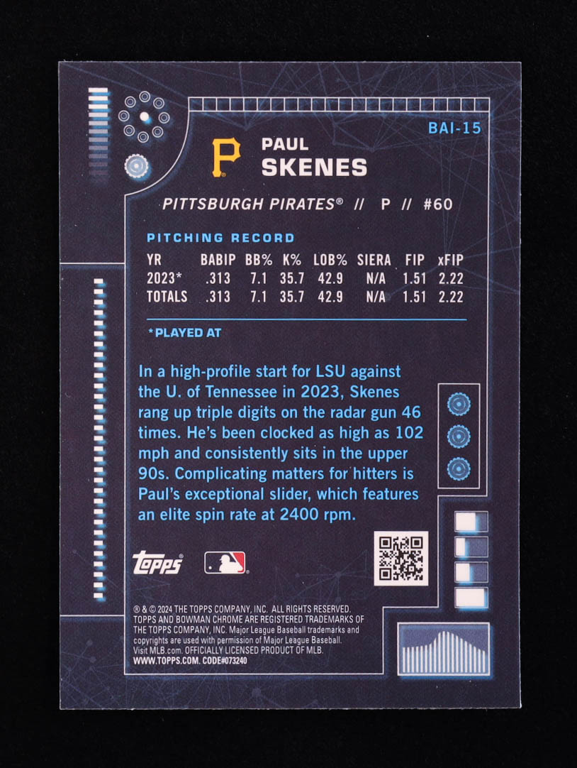 Paul Skenes 2024 Bowman Chrome Bowman AI #BAI15 RC
