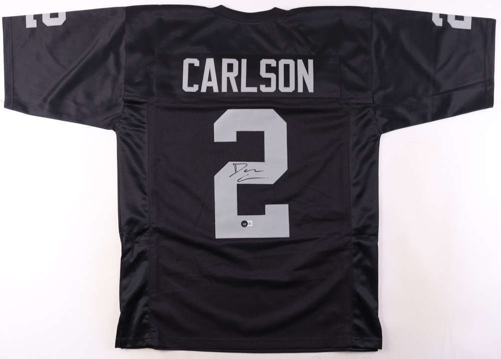 Custom jersey with everything sewn on, size XL. Hand-signed by Daniel Carlson.