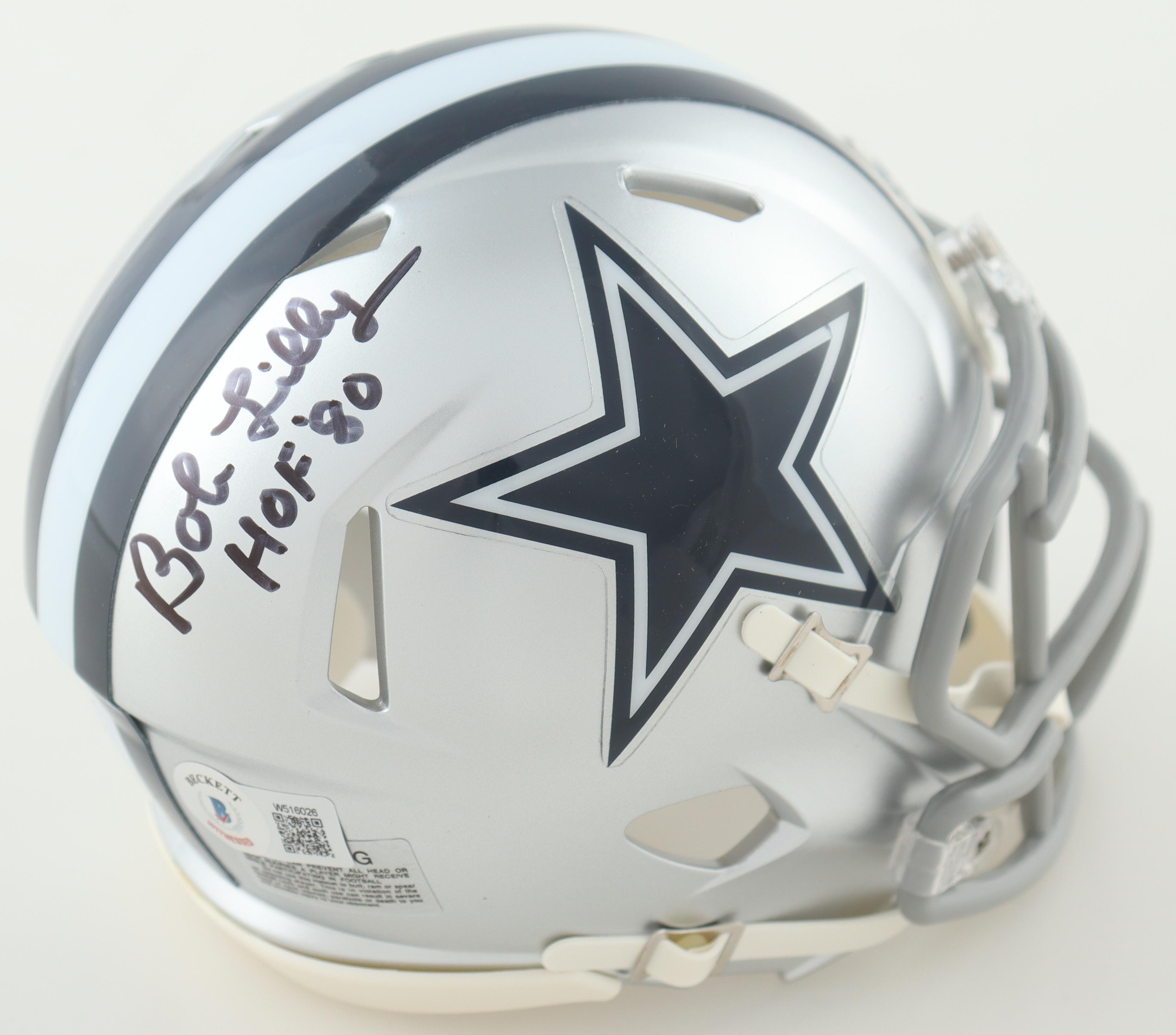 Riddell Dallas Cowboys Speed Mini Helmet. Hand-signed and inscribed by Bob Lilly (HOF).