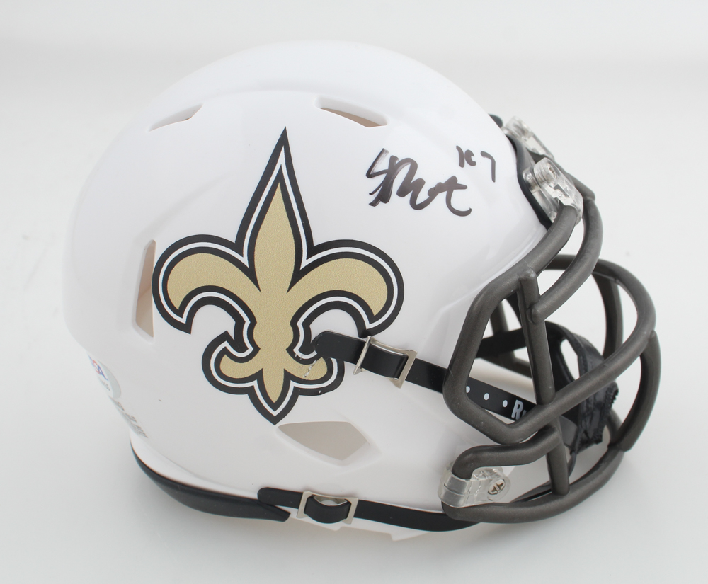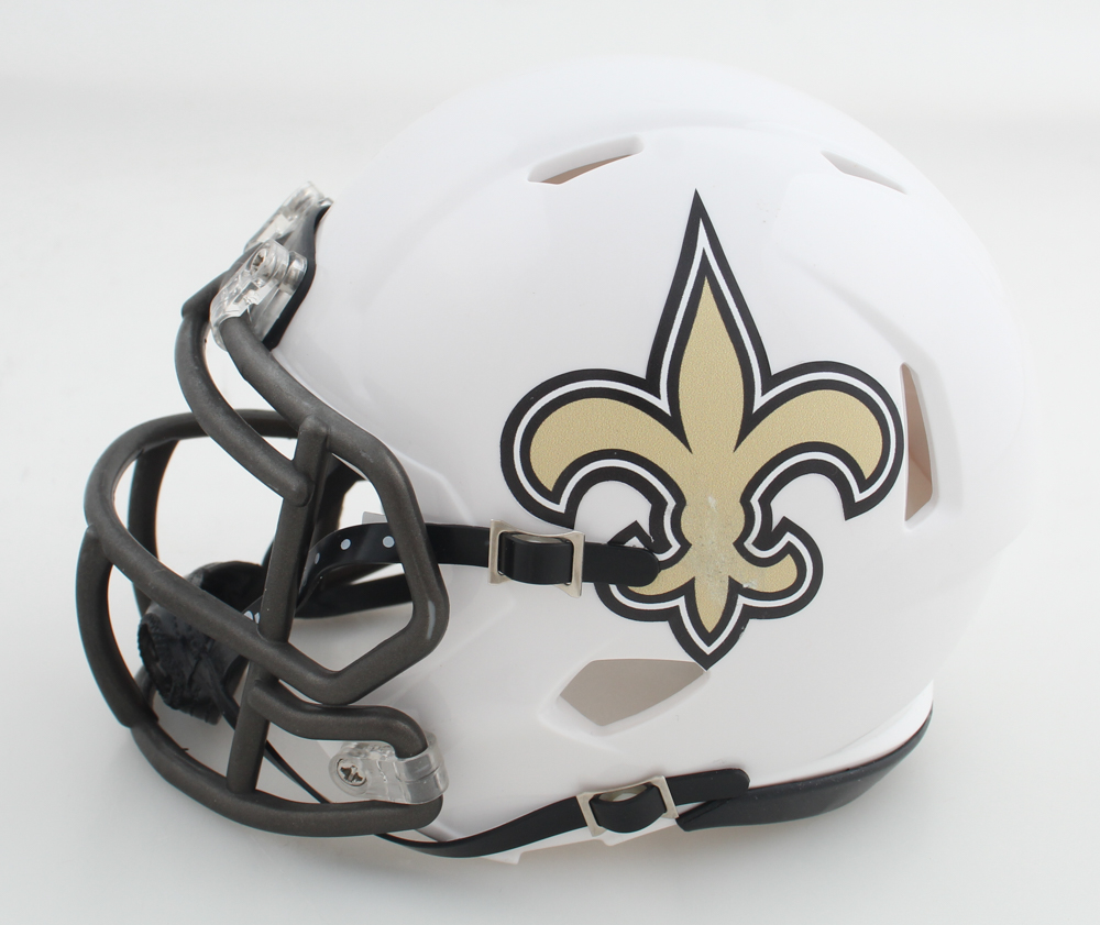 Riddell New Orleans Saints Lunar Eclipse Alternate speed mini helmet. Hand-signed by Spencer Rattler.