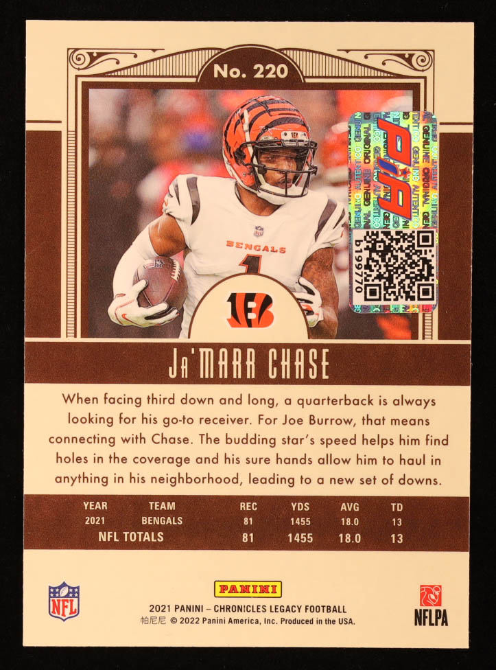 Ja'Marr Chase Signed 2021 Panini Chronicles Legacy Update Rookies #220 RC (PIA)