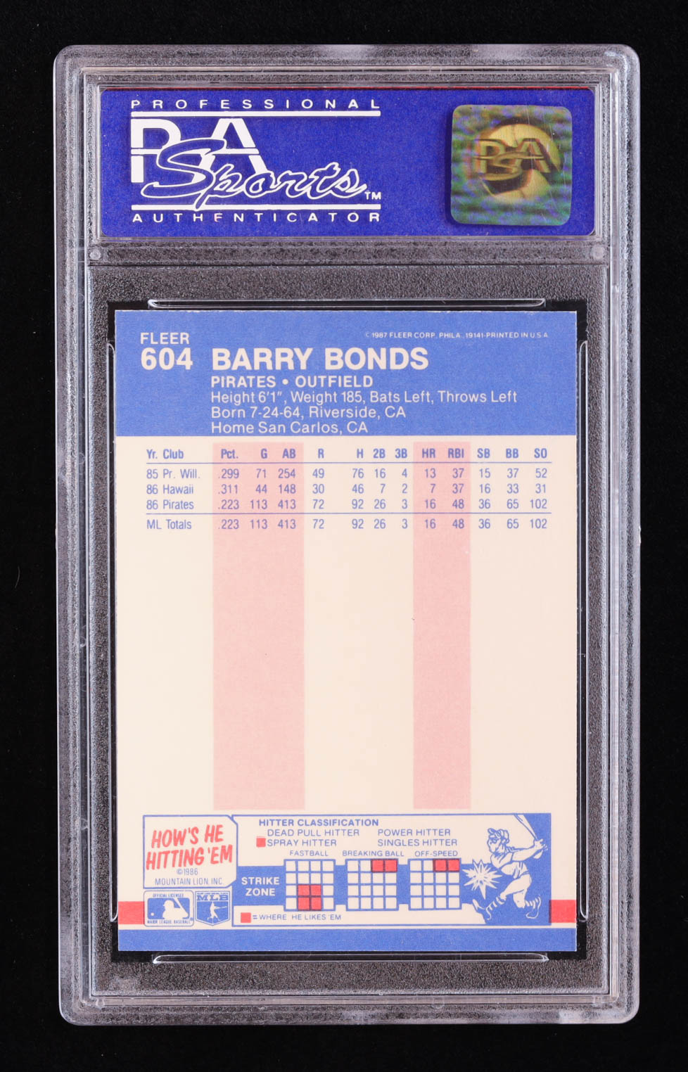 Barry Bonds 1987 Fleer #604 RC (PSA 9)