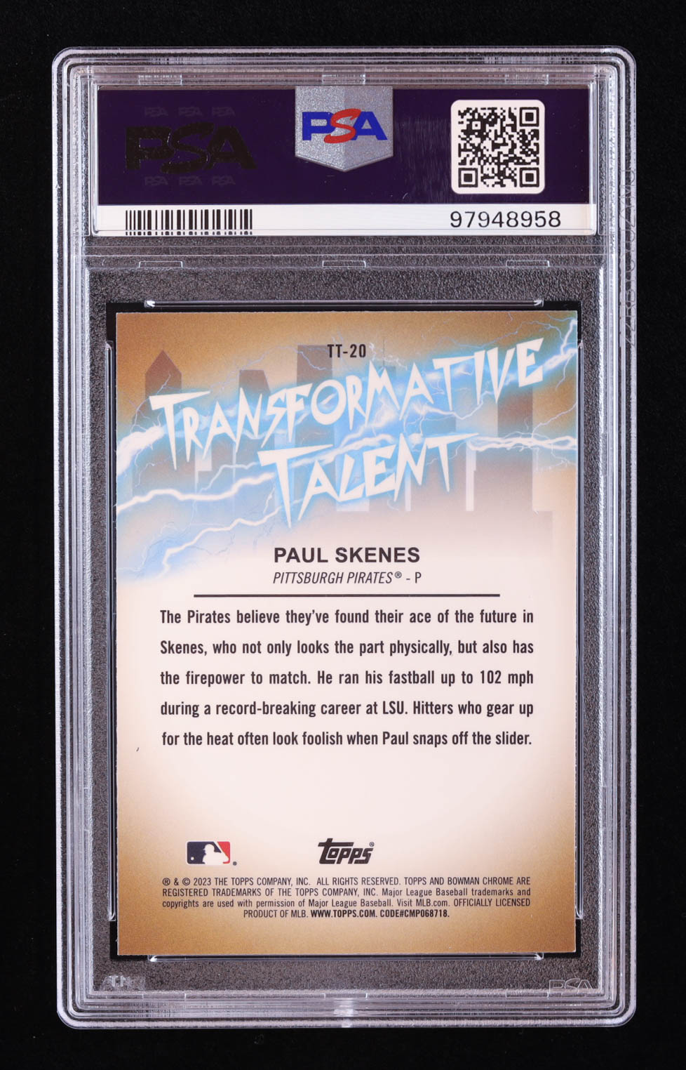Paul Skenes 2023 Bowman Chrome Draft Transformative Talent #TT20 RC (PSA 10)