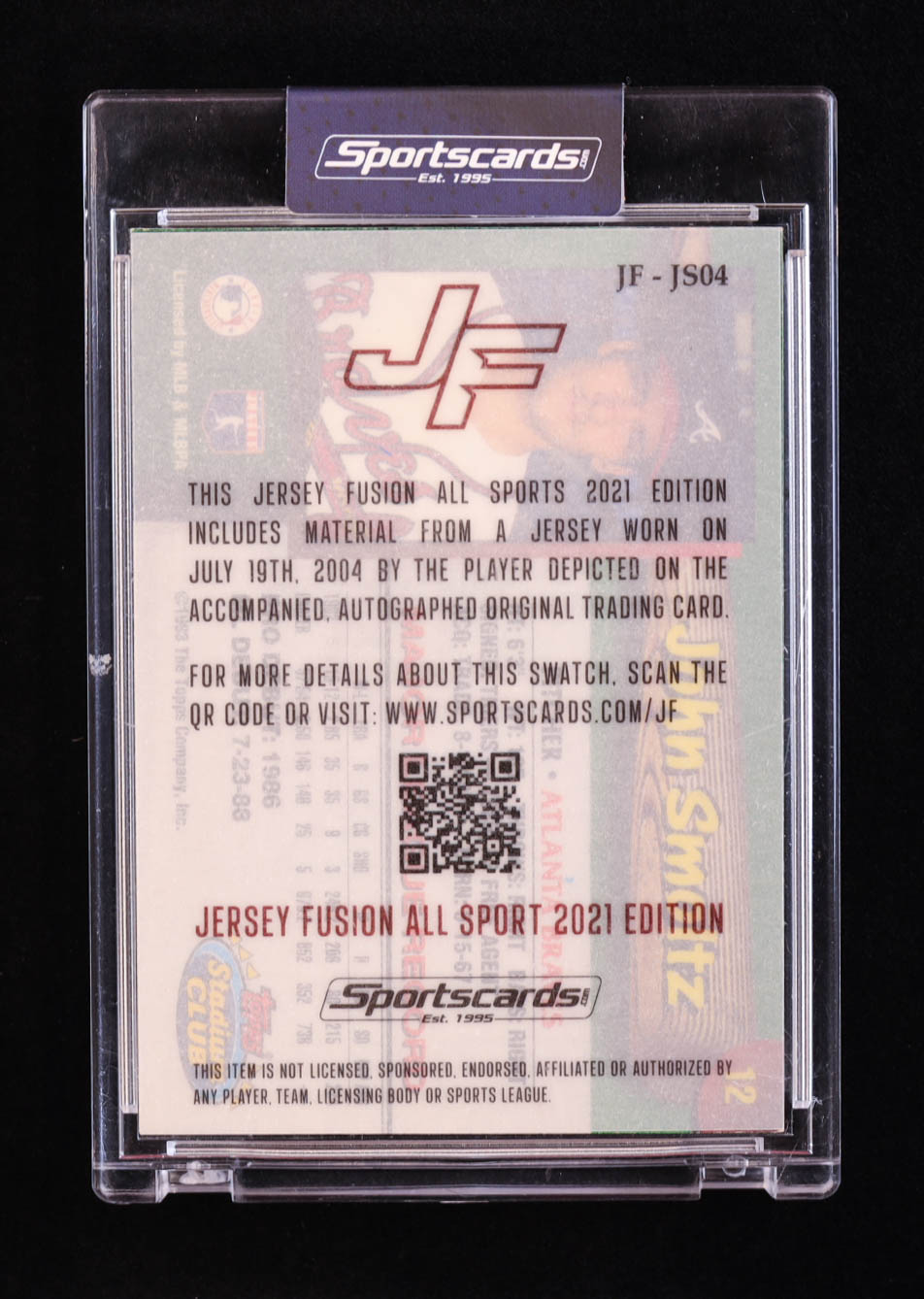 John Smoltz 2021 Jersey Fusion Game Used Number Patch #JS04 #66/99