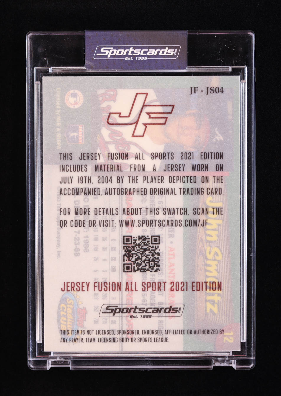 John Smoltz 2021 Jersey Fusion Game Used Number Patch #JS04 #3/99