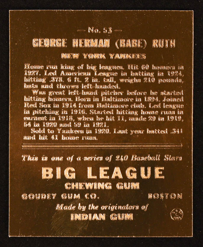 Babe Ruth 1996 Goudey Big League 23Kt Gold #53