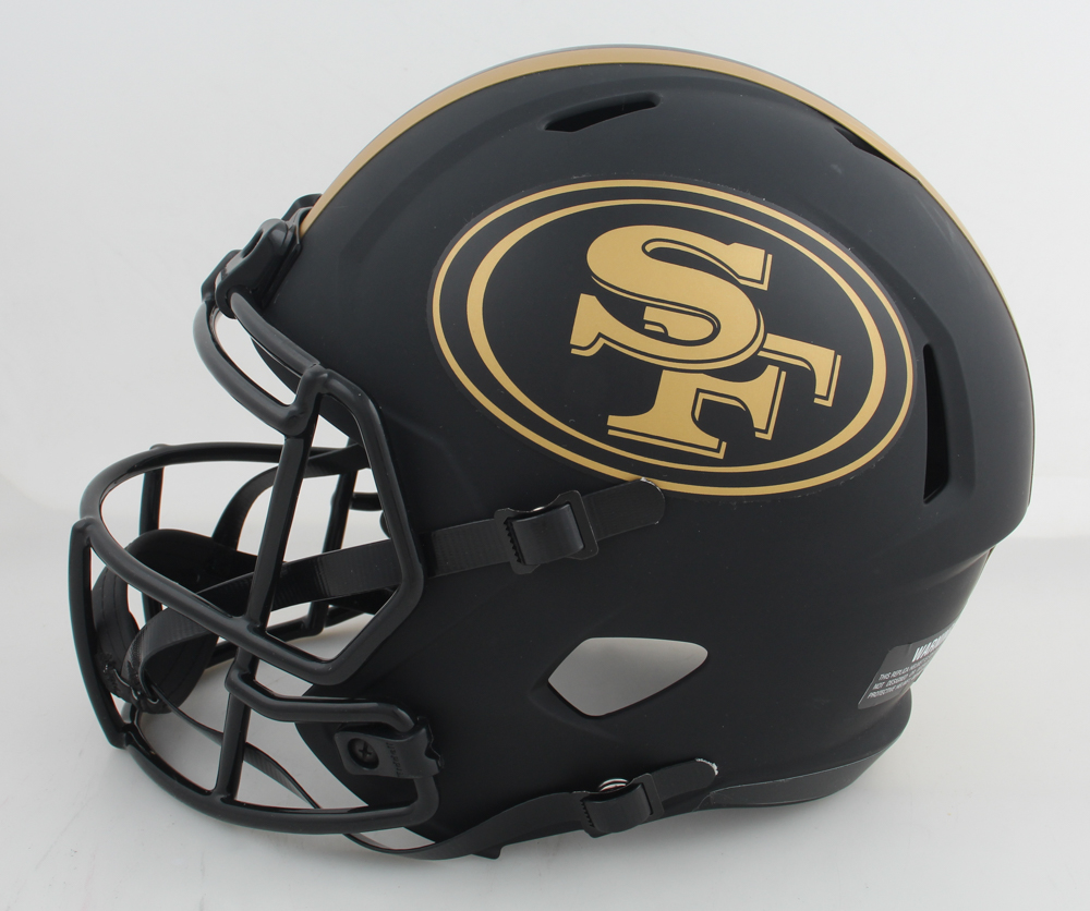 Riddell San Francisco 49ers full-size eclipse alternate speed replica helmet. Hand-signed by Brock Purdy.