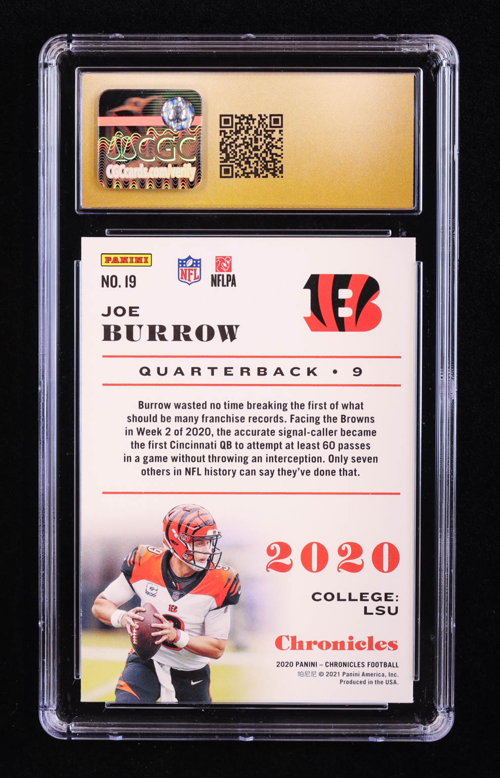 Joe Burrow 2020 Panini Chronicles #19 RC (CGC 10 | Pristine Black Label)