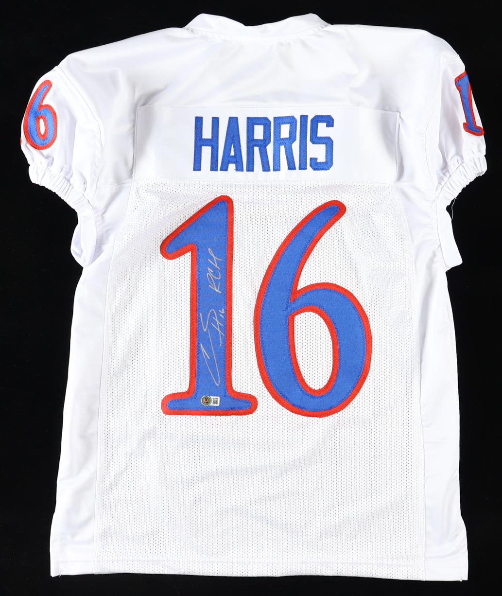 Custom jersey with everything sewn on, size XL. Hand-signed by Chris Harris Jr.