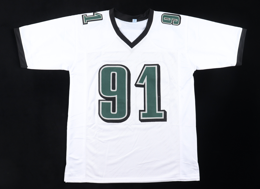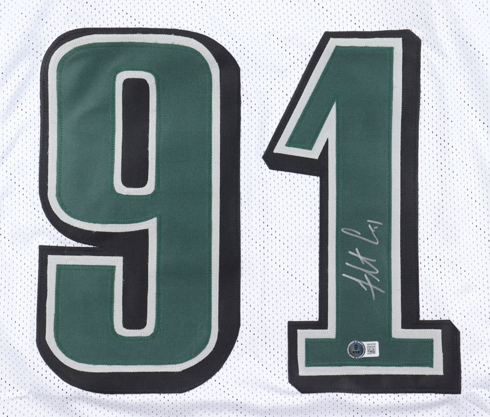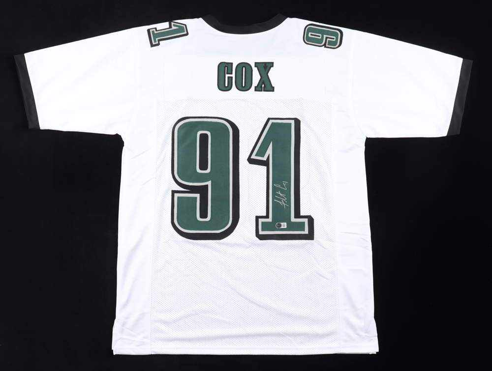 Custom jersey with everything sewn on, size XL. Hand-signed by Fletcher Cox.