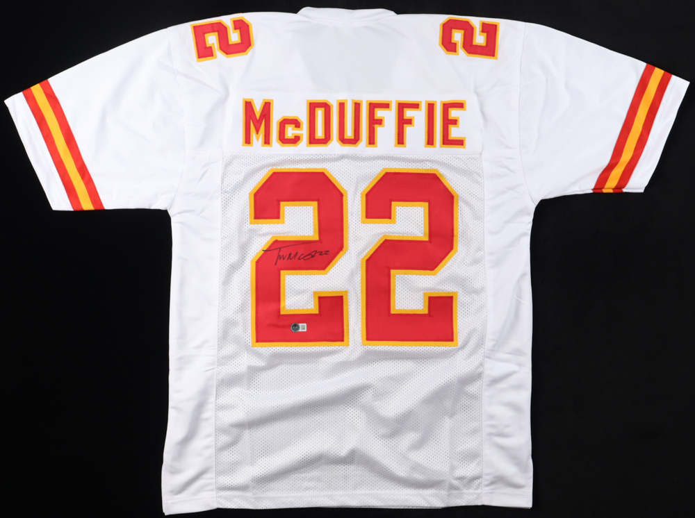 Custom jersey with everything sewn on, size XL. Hand-signed by Trent McDuffie.