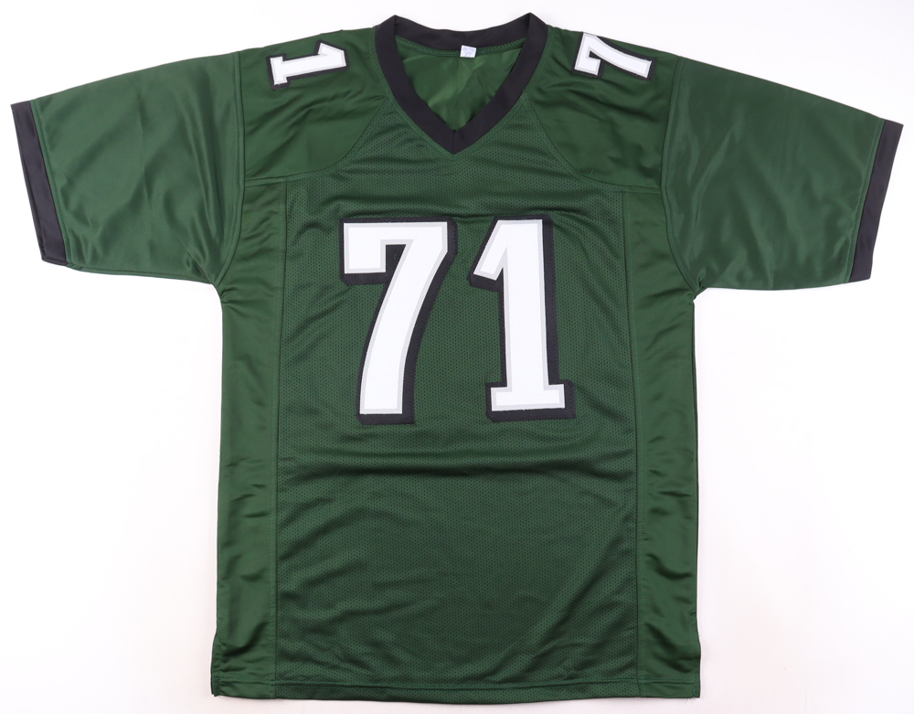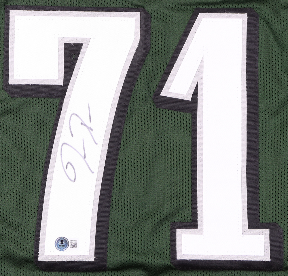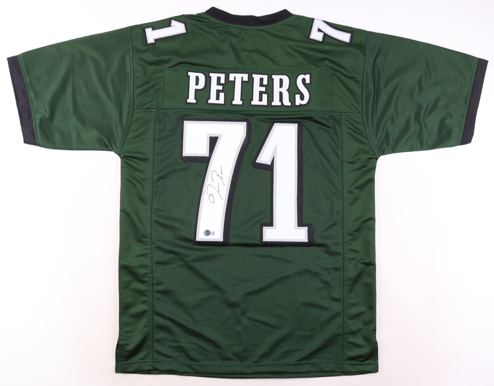 Custom football jersey. Everything sewn on, size XL. Hand-signed by Jason Peters.