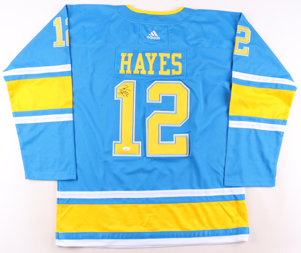 Adidas hockey jersey. Everything sewn on, size 54. Hand-signed by Kevin Hayes. Please note, there is a stain to the left of the reverse number. See photos regarding the condition of the item.