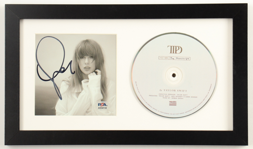 Custom frame measures approximately 8" x 13" in size and features a "The Torture Poets Department" CD insert that has been hand-signed by Taylor Swift. Disc is included as shown.
