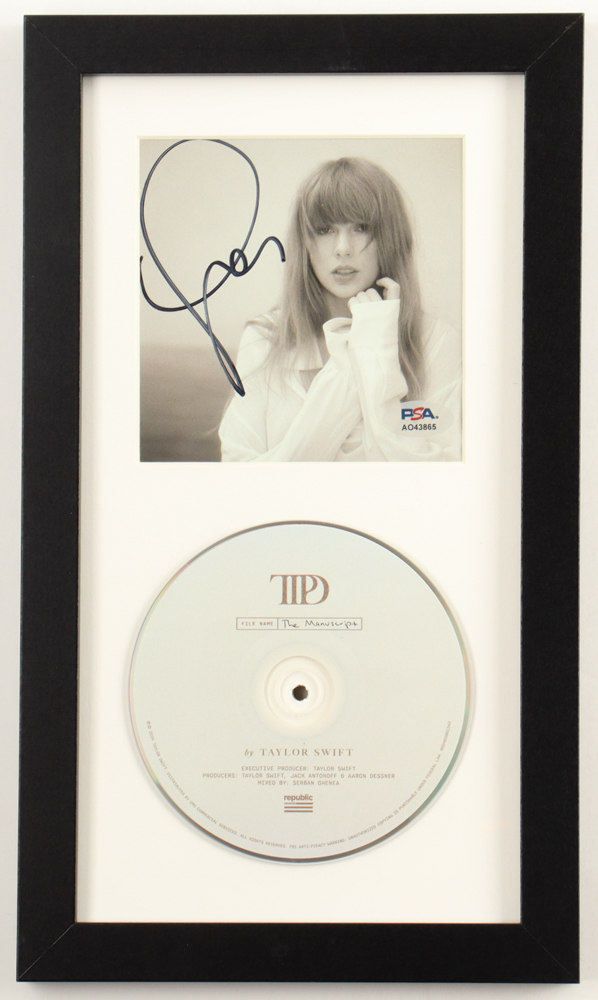 Custom frame measures approximately 8" x 13" in size and features a "The Torture Poets Department" CD insert that has been hand-signed by Taylor Swift. Disc is included as shown.