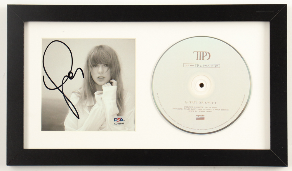 Custom frame measures approximately 8" x 13" in size and features a "The Torture Poets Department" CD insert that has been hand-signed by Taylor Swift. Disc is included as shown.
