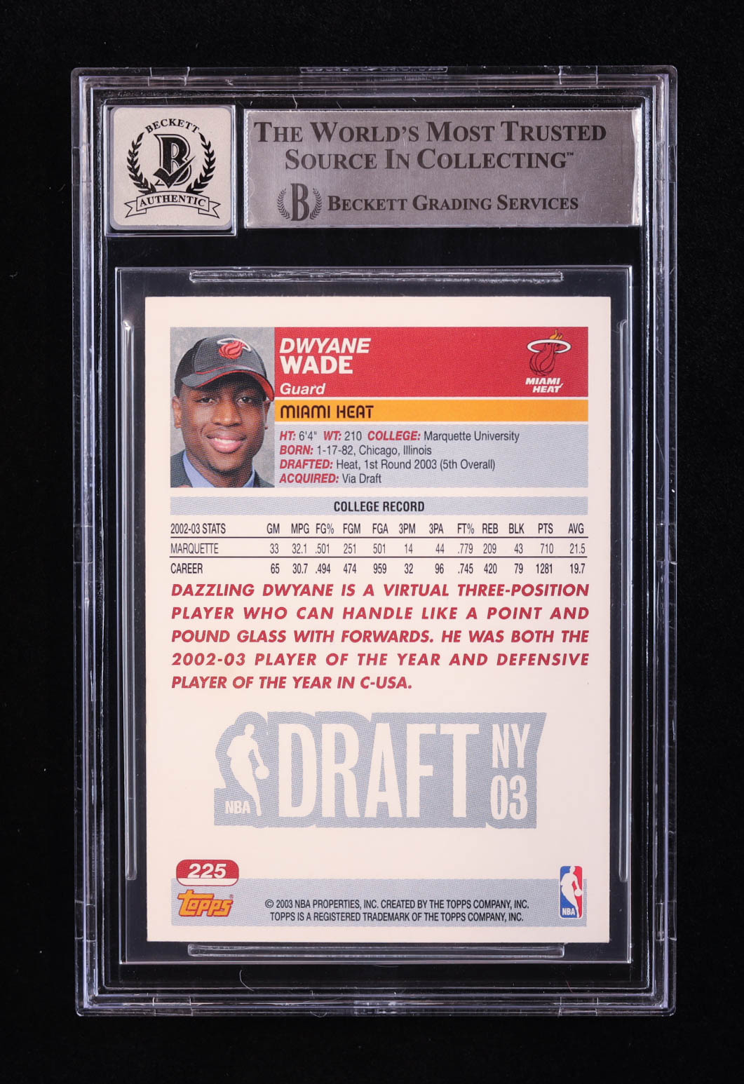 Dwyane Wade Signed 2003-04 Topps #225 RC (BGS | Auto 10)