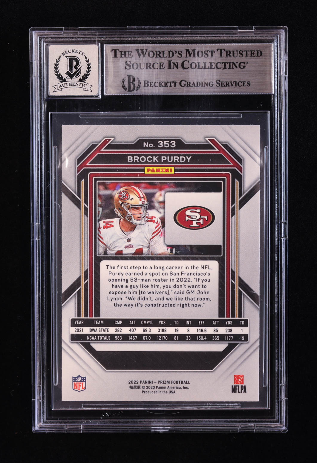 Brock Purdy Signed 2022 Panini Prizm #353 RC (BGS | Auto 10)