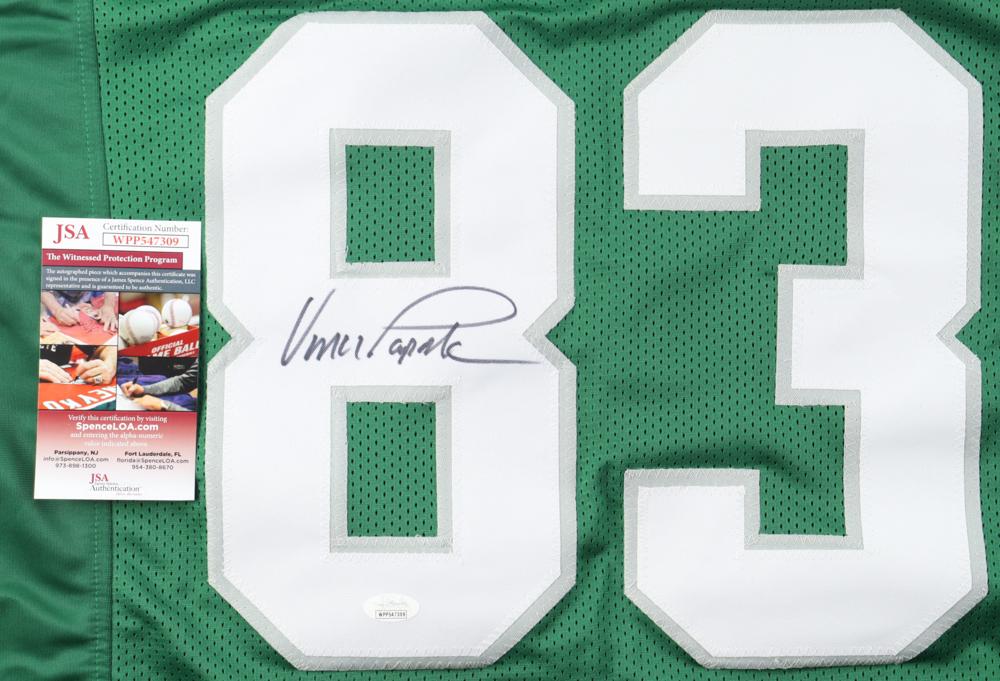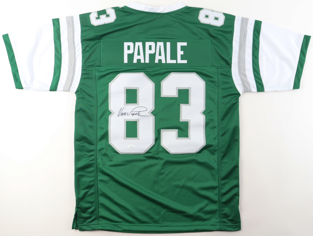 Custom jersey. Everything sewn on, size XL. Hand-signed by Vince Papale.