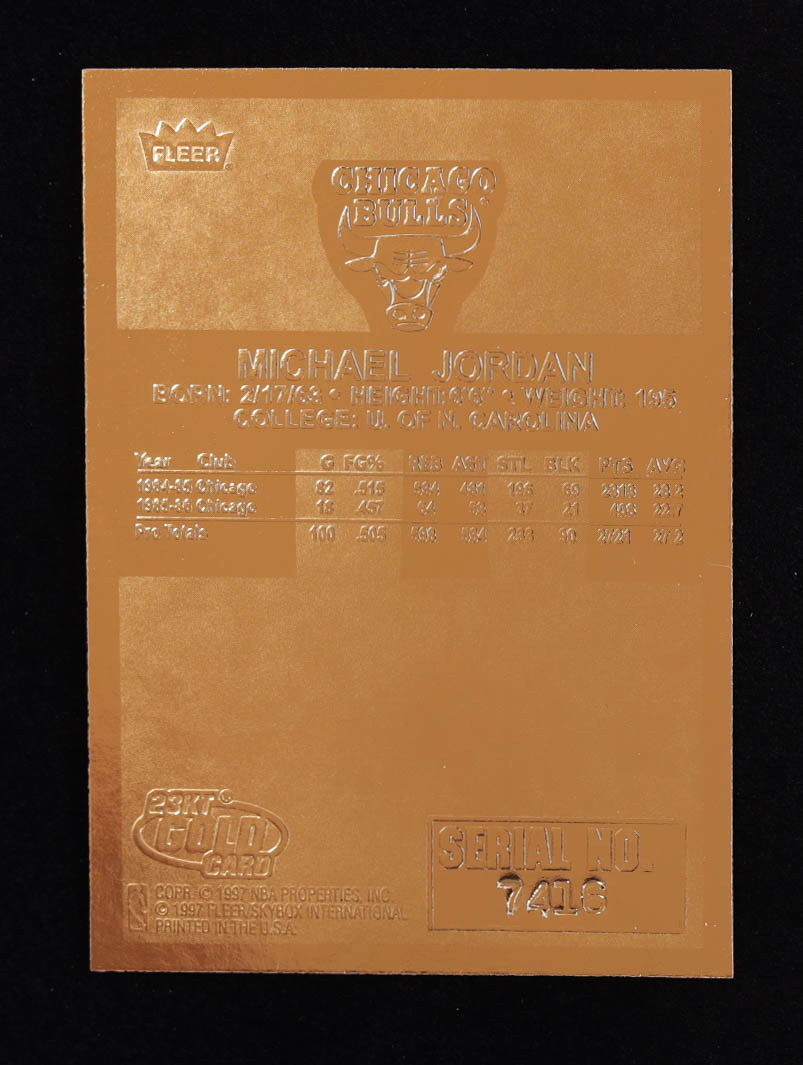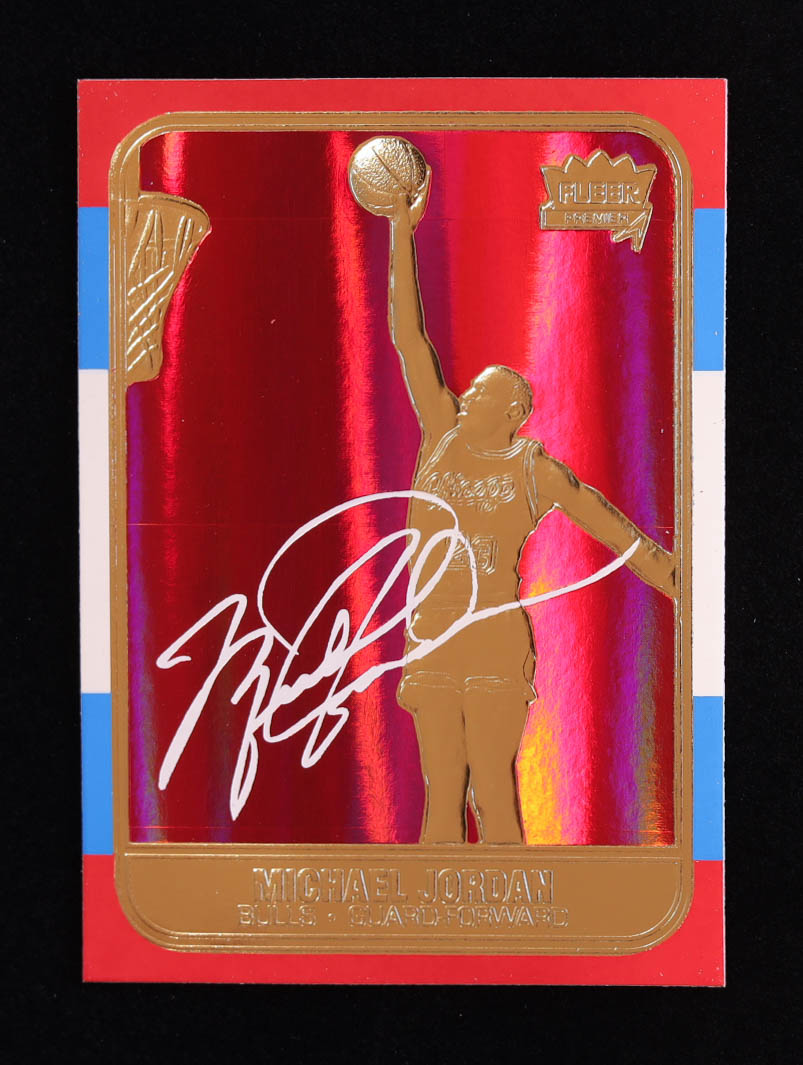 Michael Jordan 1997 Fleer Premier Signature Series Red Holo Refractor 23Kt Gold Card #7416