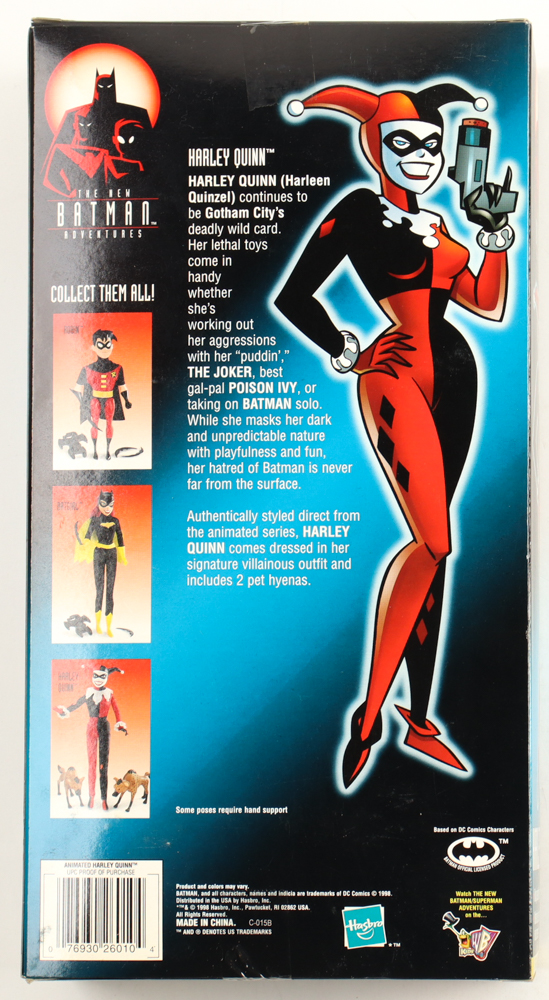 1998 Hasbro The New Batman Adventures "Harley Quinn" action collection figure. Please note, this item is unsigned, the box has some scuffing and window has damage. Refer to photos for more details.