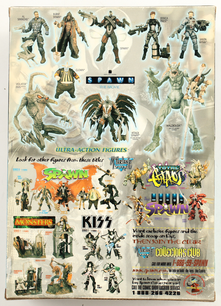 1997 McFarlane Toys Spawn: The Movie "Attack Spawn" ultra action figure. Please note, this item is unsigned, the box has some scuffing and handling wear. Refer to photos for more details.
