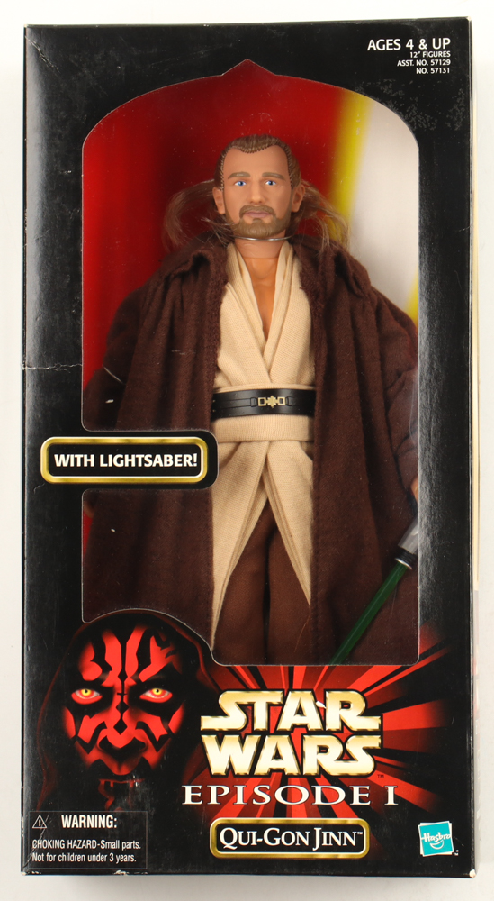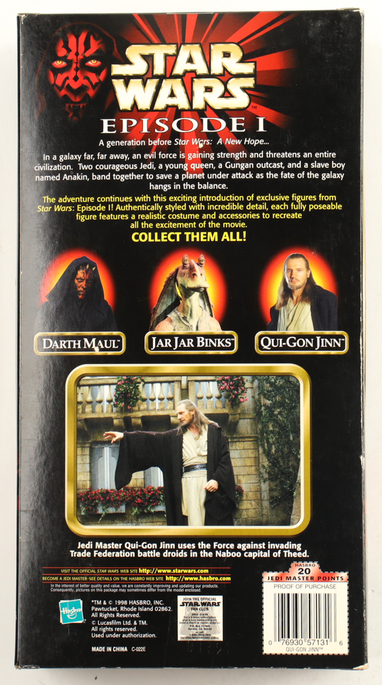 1998 Hasbro Star Wars: Episode I "Qui-Gon Jinn" action figure. Please note, this item is unsigned and the box shows handling wear.