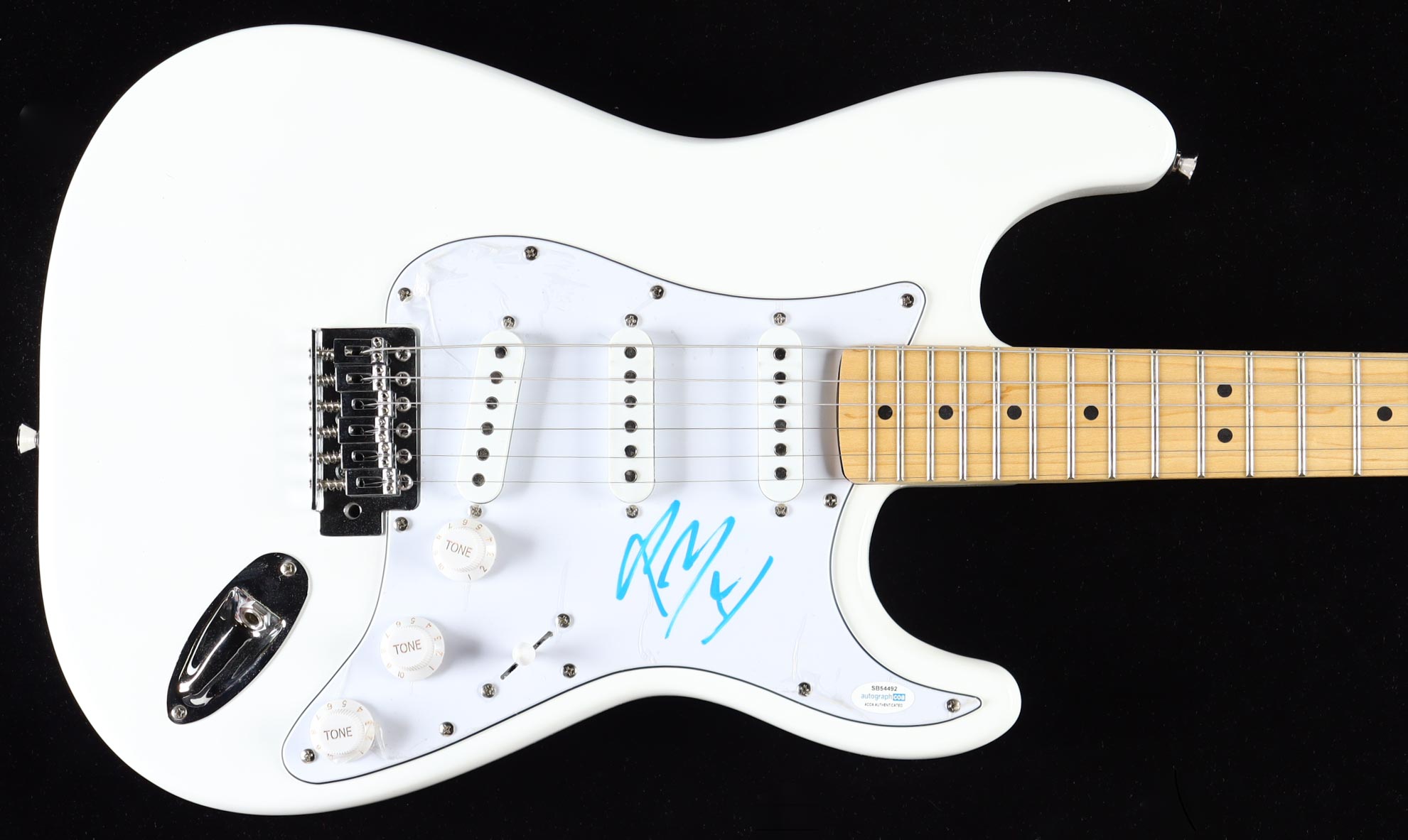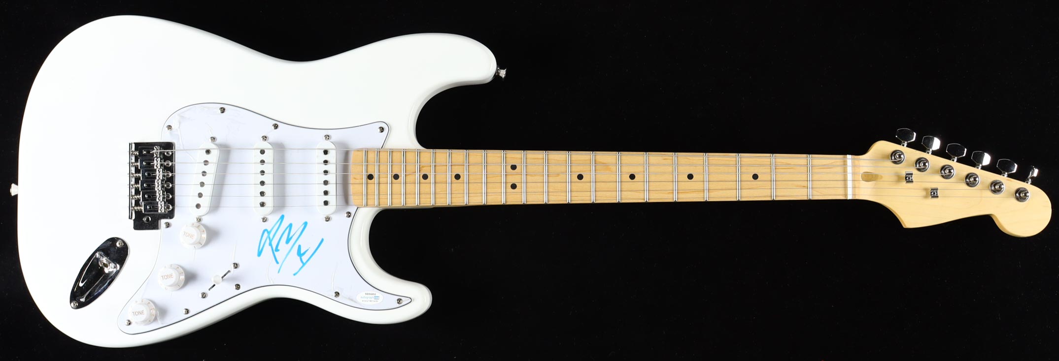 Full-size electric guitar measures approximately 39" in length and has been hand-signed on the pick-guard by Post Malone.