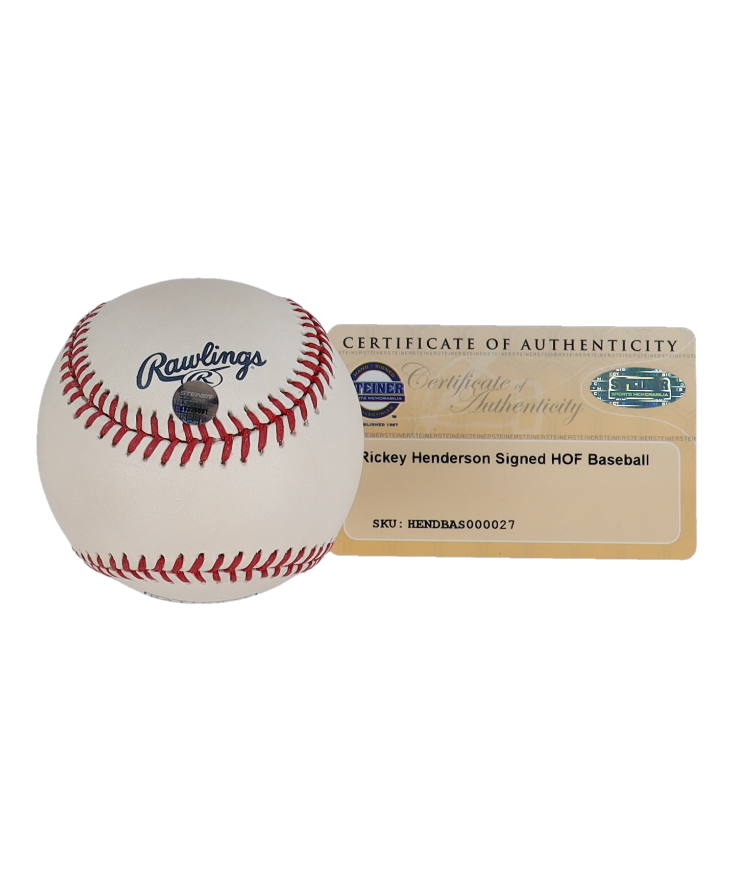 Rawlings Official Major League Hall of Fame Logo Baseball. Hand-signed by Rickey Henderson (Oakland Athletics, HOF).