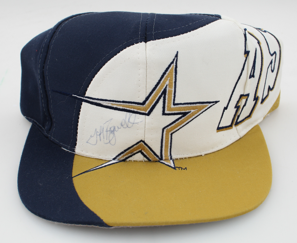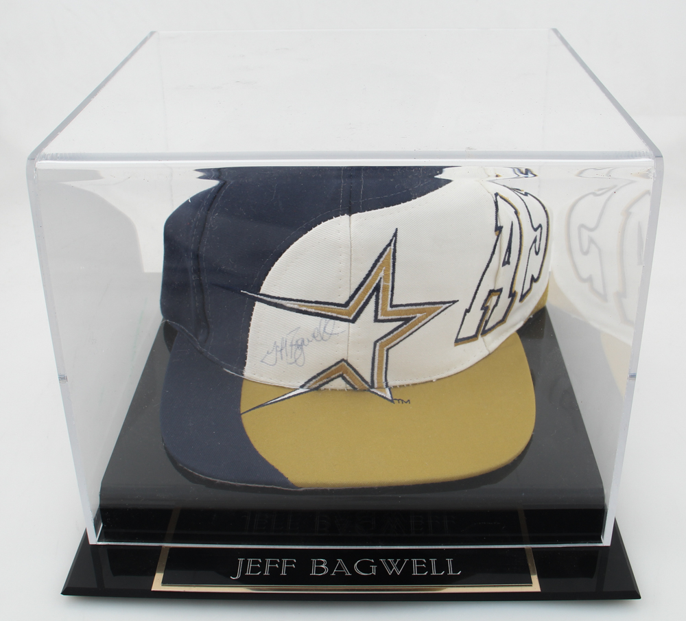 Houston Astros logo snapback hat. Hand-signed by Jeff Bagwell (HOF). Display case is included, as shown.