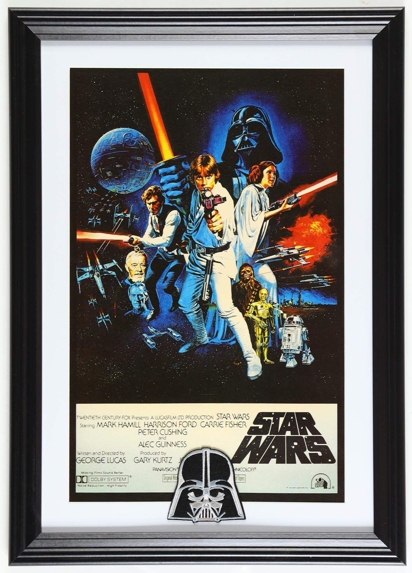 1977 "Star Wars: A New Hope" Custom Framed Print Display With Darth Vader Patch