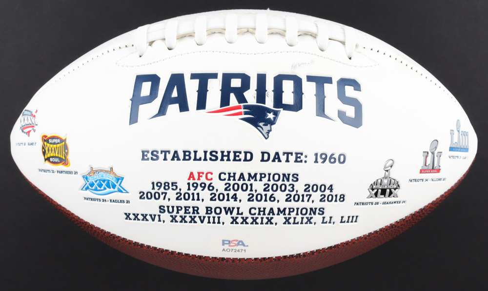 New England Patriots logo football. Hand-signed by Rob Gronkowski.