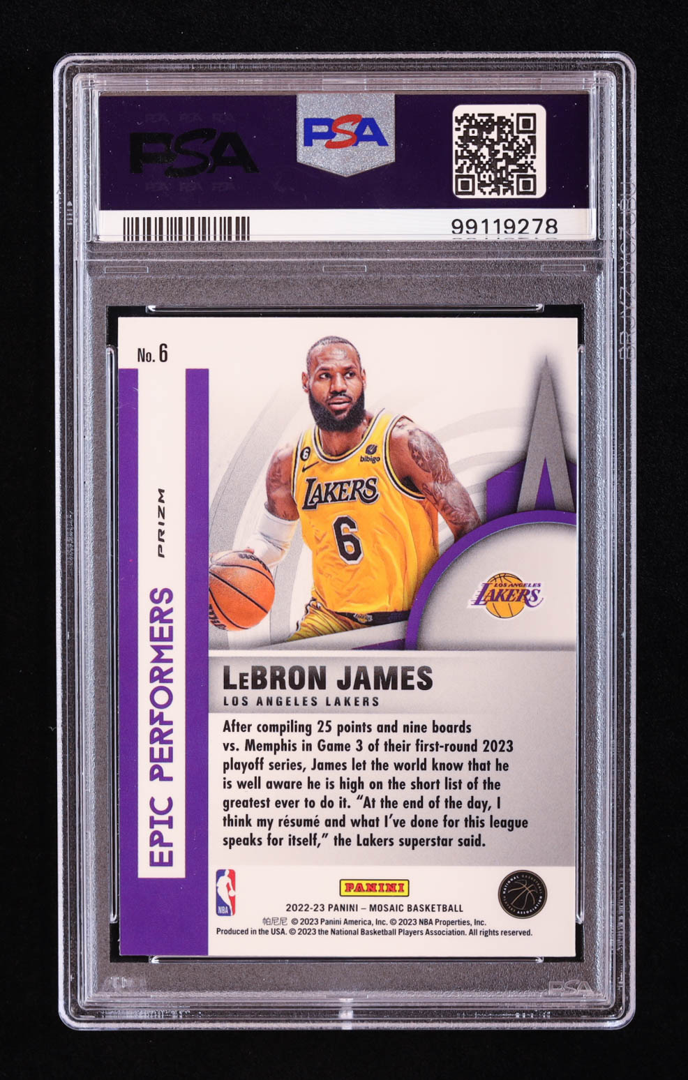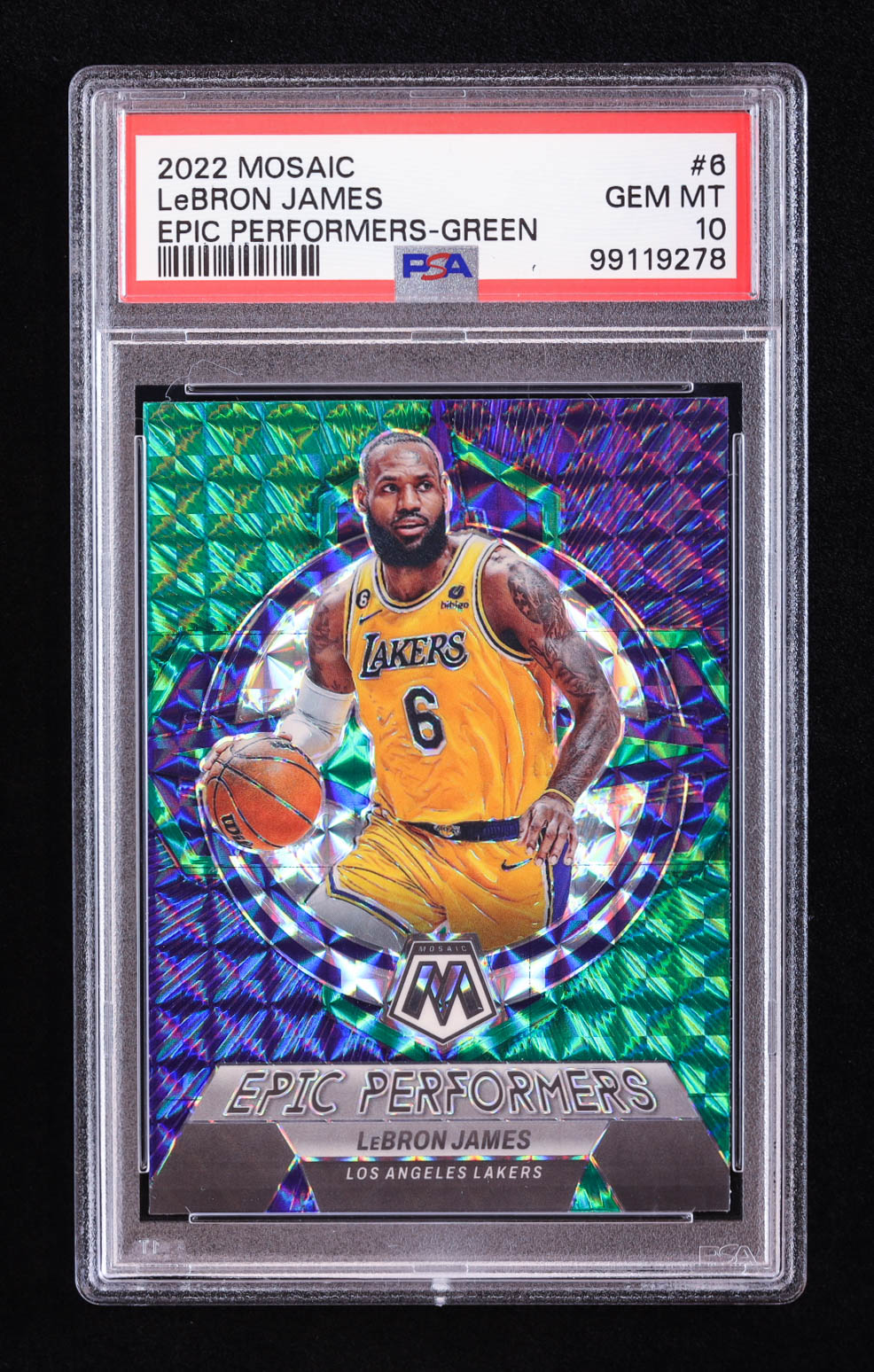 LeBron James 2022-23 Panini Mosaic Epic Performers Mosaic Green #6 (PSA 10)