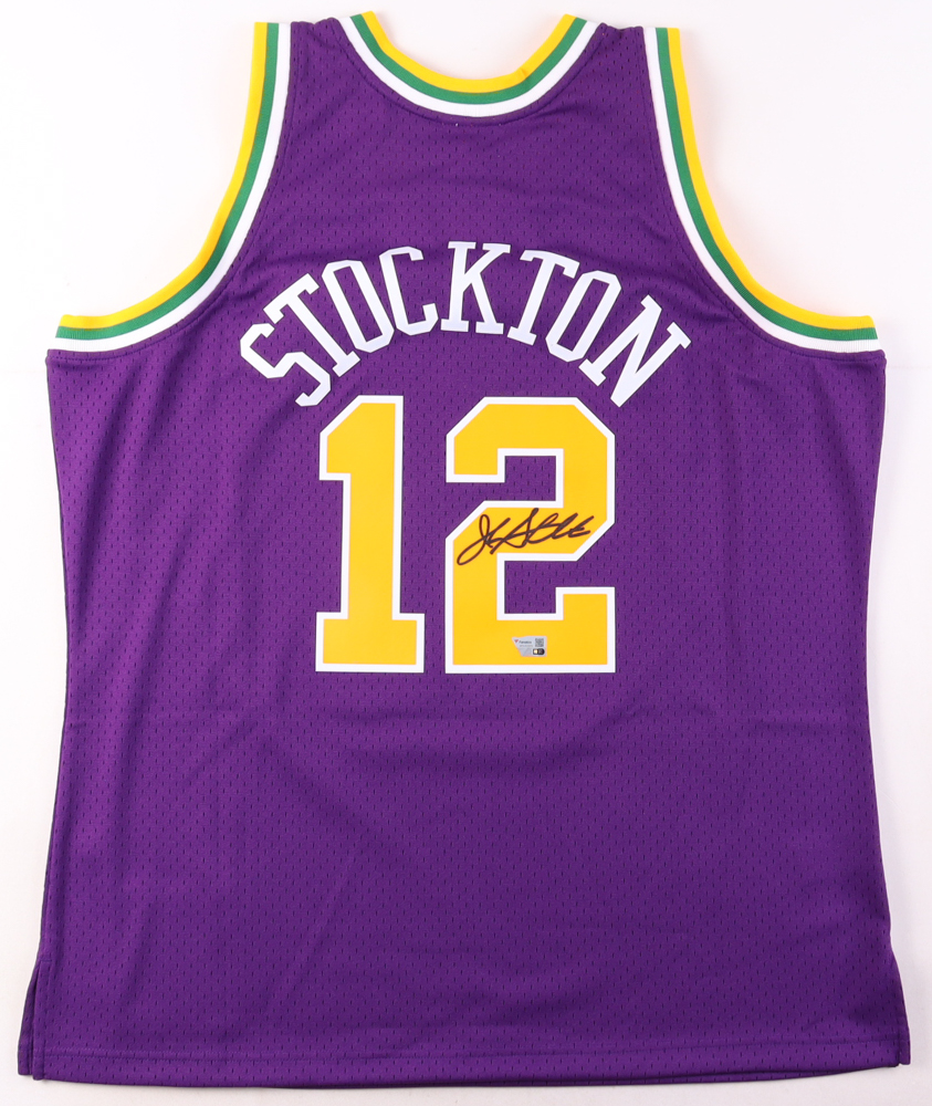John Stockton Signed Jazz Mitchell & Ness Swingman Jersey (Fanatics)