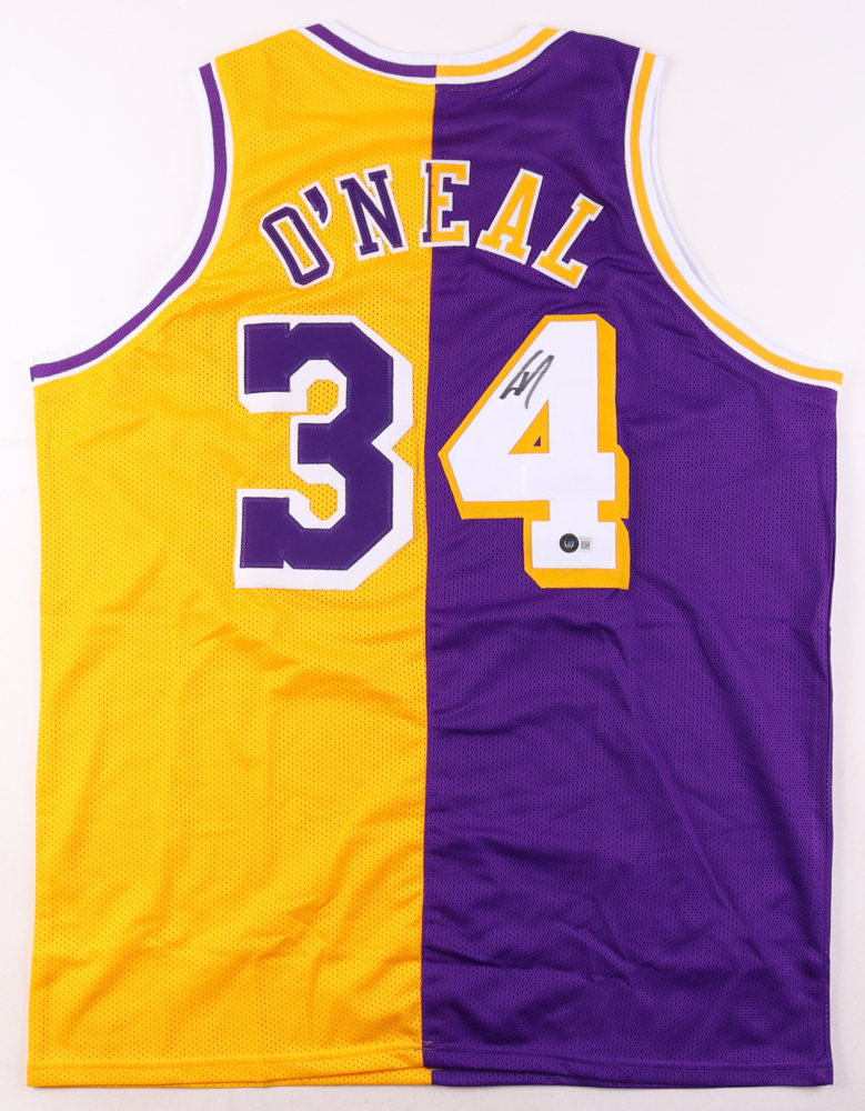 Custom style jersey with everything sewn on, size XL. Hand-signed by Shaquille O'Neal (HOF).
