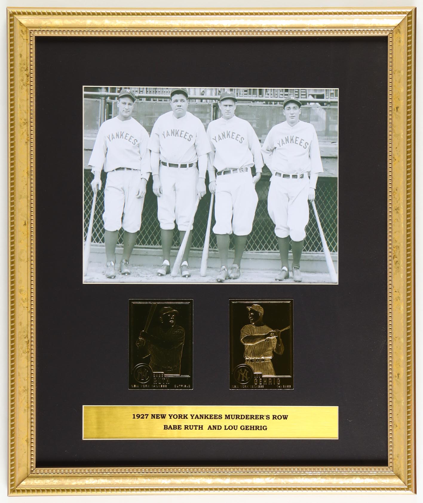 "Babe Ruth & Lou Gehrig Yankees Murderer's Row" Custom Framed Photo Display with (2) 23kt Gold Trading Cards