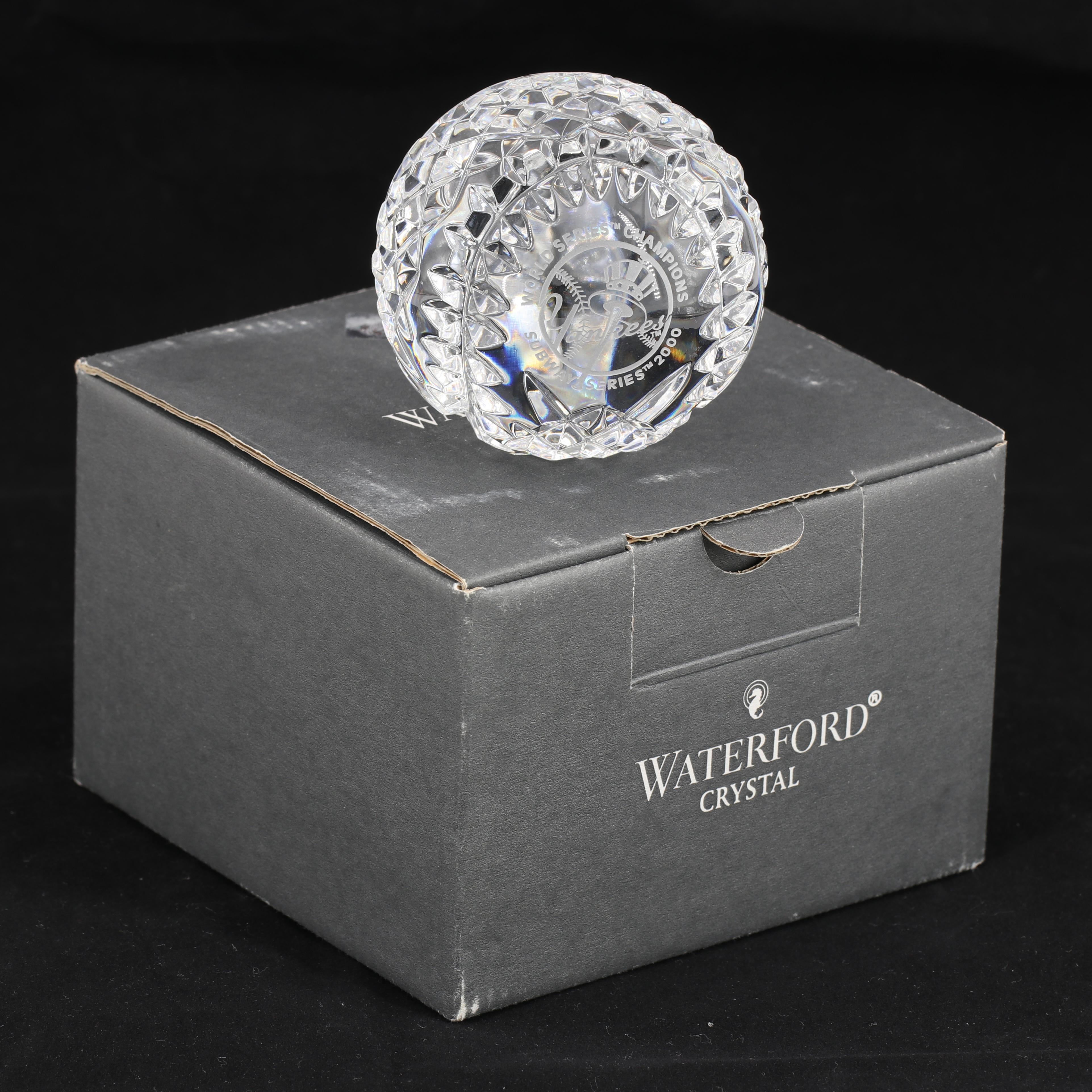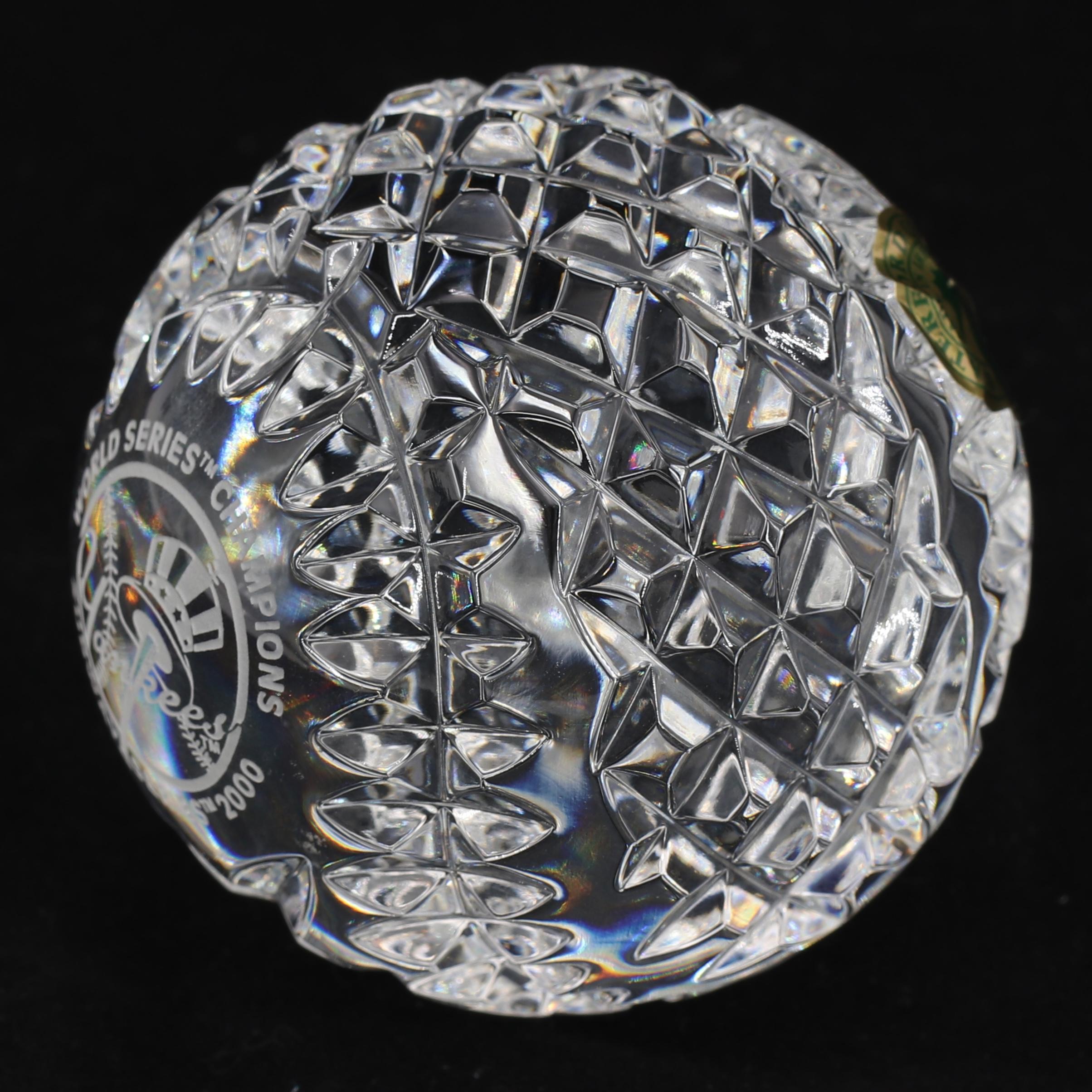 Waterford Crystal baseball commorating the 2000 World Series Champions, New York Yankees! This item is limited edition and has been engraved #1977/2000. Comes in original box as shown.