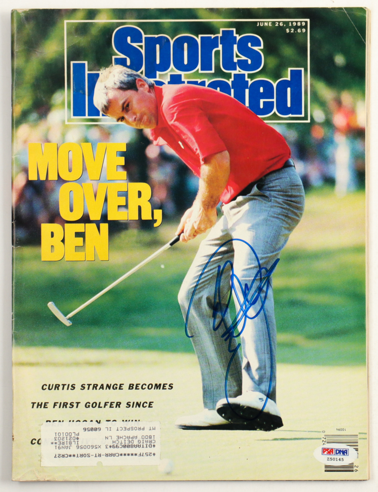June 26, 1989 issue of "Sports Illustrated" magazine. Hand-signed on the front cover by Curtis Strange (HOF).