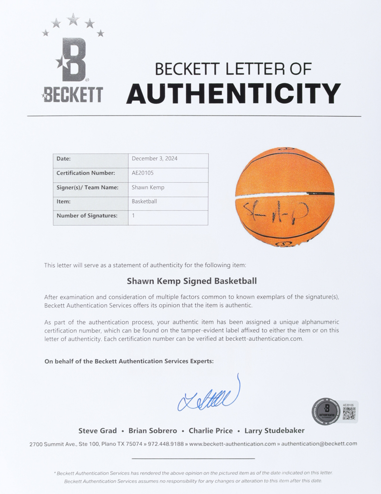 Shawn Kemp Signed NBA Basketball (Beckett)