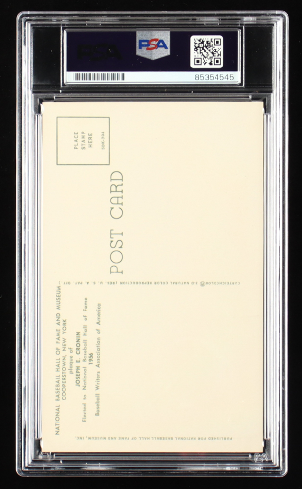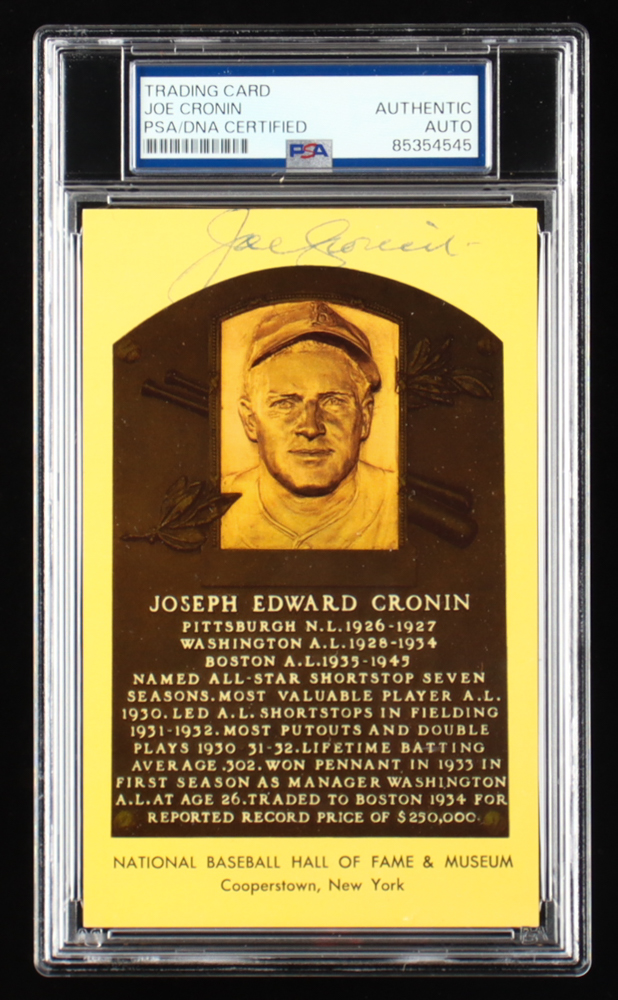 Joe Cronin Signed Hall of Fame Plaque Postcard (PSA)