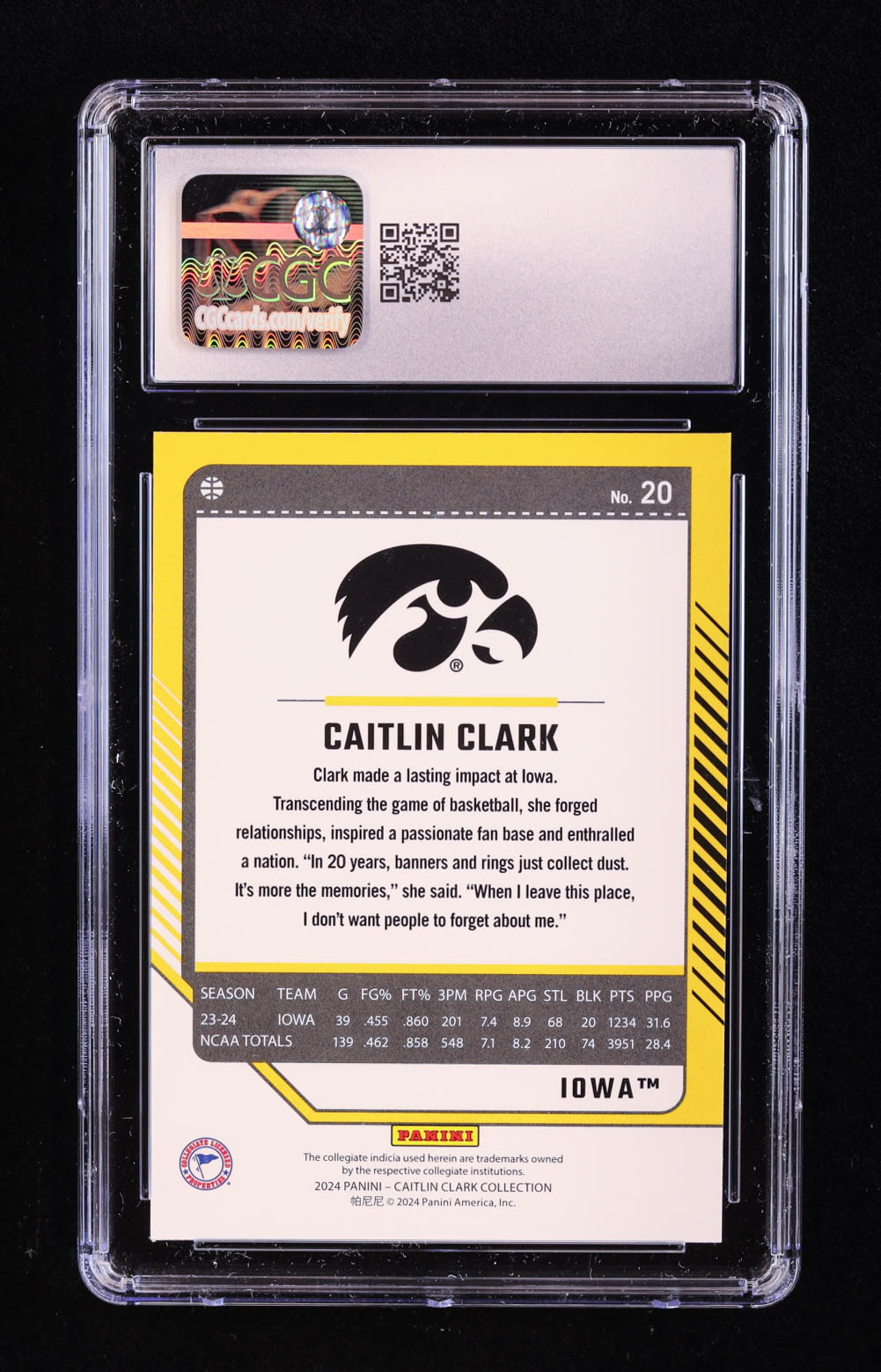 Caitlin Clark 2024 Panini Caitlin Clark Collection Donruss #20 RC (CGC 10)