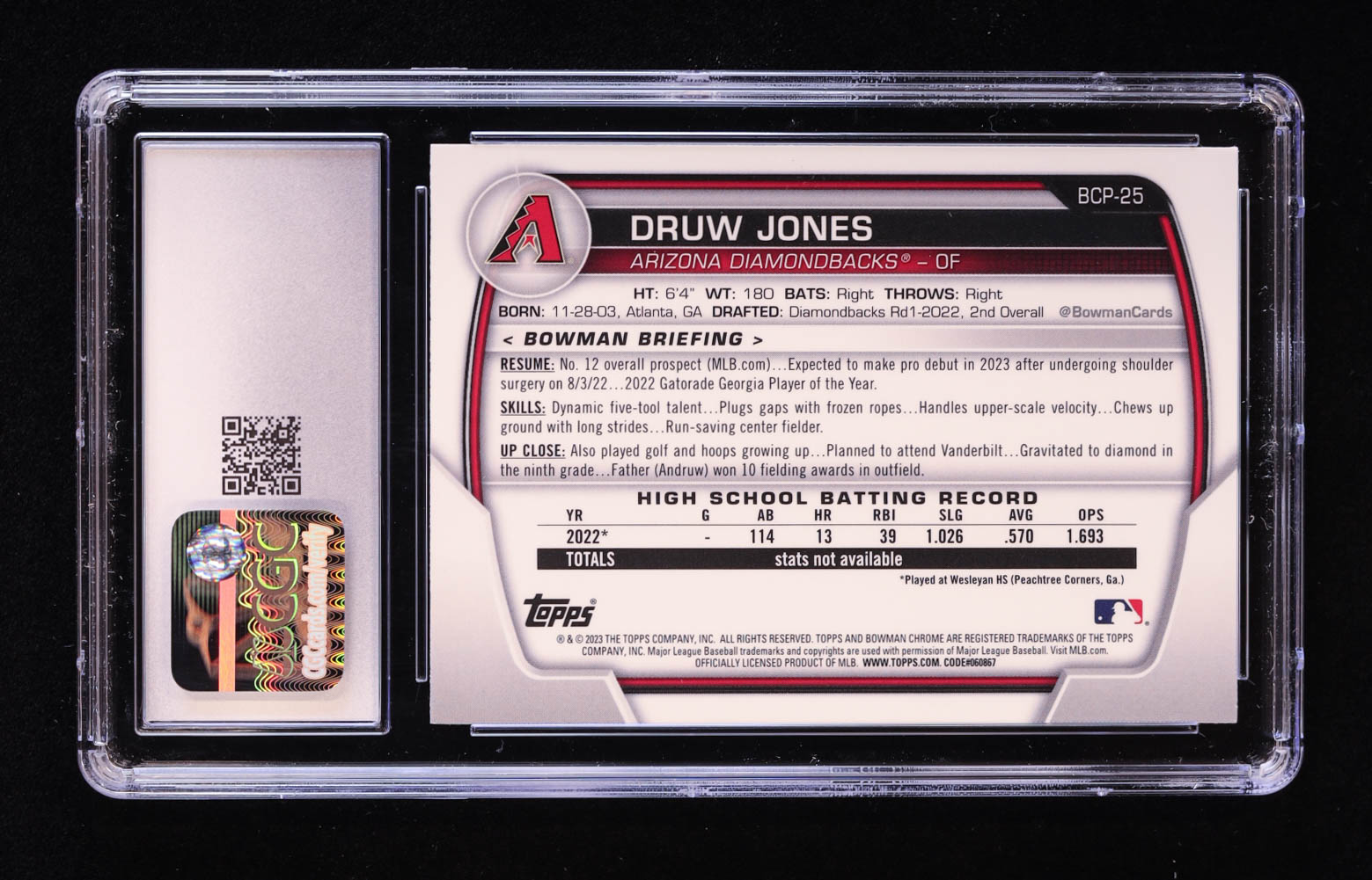 Druw Jones 2023 Bowman Chrome Mega Box Prospects #BCP25 RC (CGC 10)